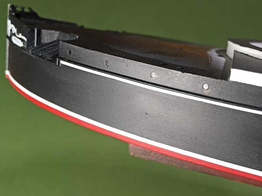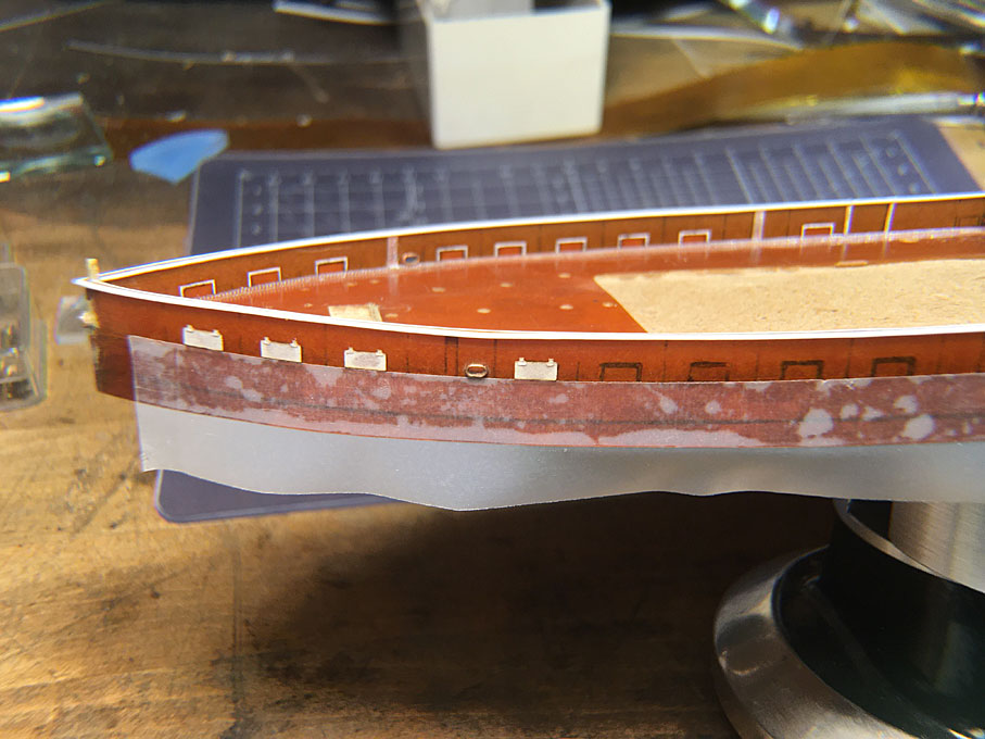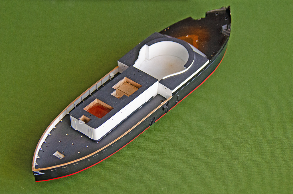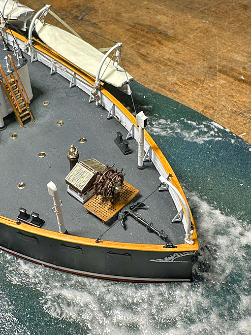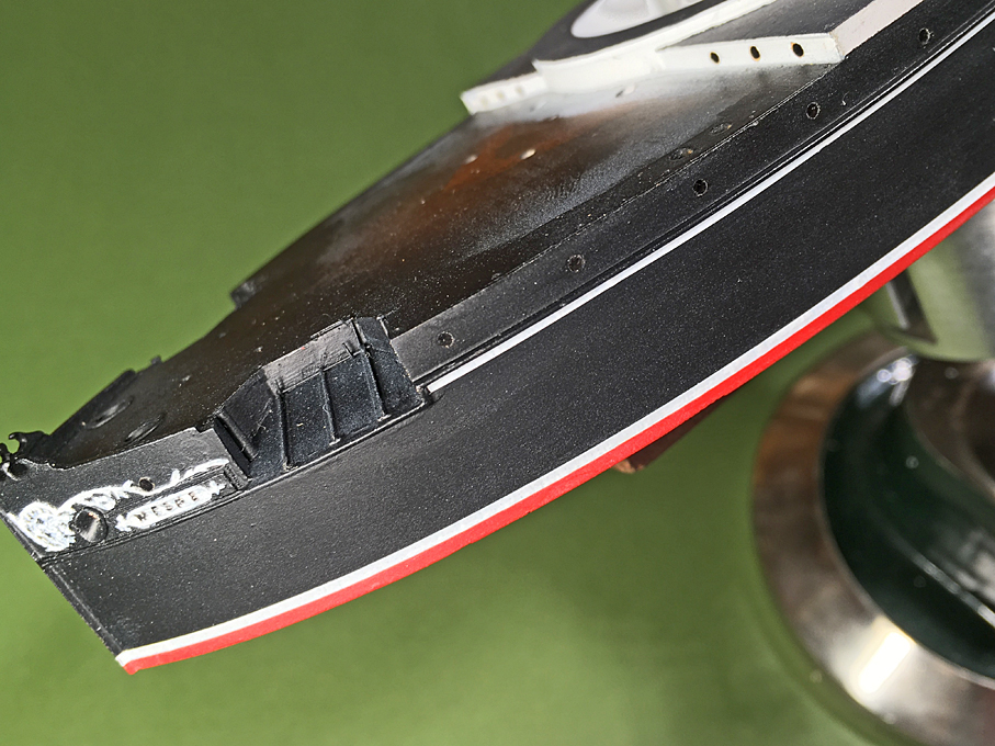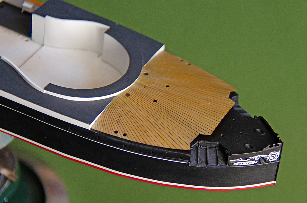 white glue. Bonds between large areas of metal foil and Plexiglas® might become detached, though the plating on the steam-tug,
