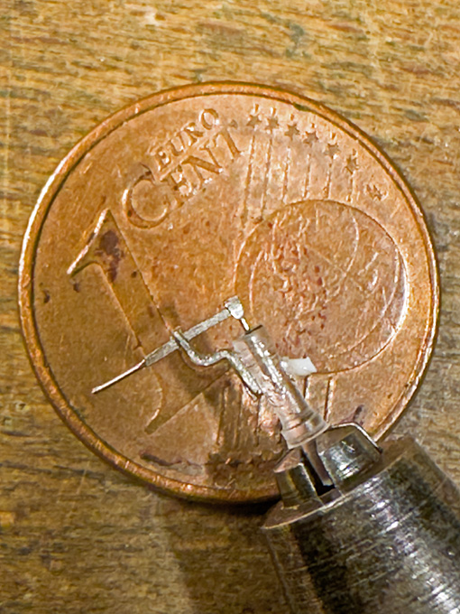 length of 0.1 mm tinned copper wire to simulate the hook and